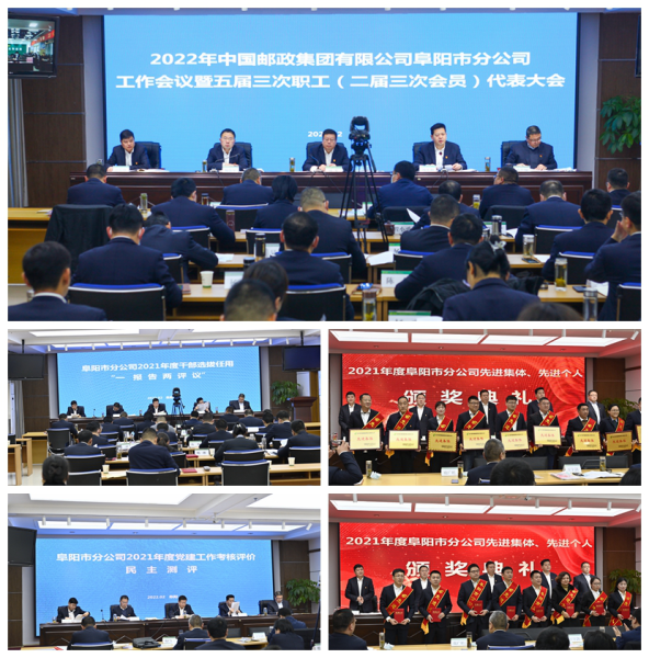 2月10日,阜陽市分公司工作會議暨五屆三次職工(二屆三次會員)代表大會順利召開。會議嚴格落實疫情防控要求,以現場會和電視電話會議相結合的形式召開,共設置1個主會場,6個分會場。 會上,市分公司黨委書記、總經理田斐同志傳達了省郵政工作會議精神,并作了題為《打造核心競爭優勢 縱深推進提質增效 在汲取思想偉力中實現更高質量發展》的工作報告,全面總結了2021年各項工作成效,全面部署了2022年經營發展目標和各項工作舉措。