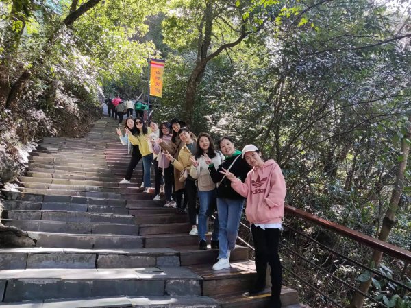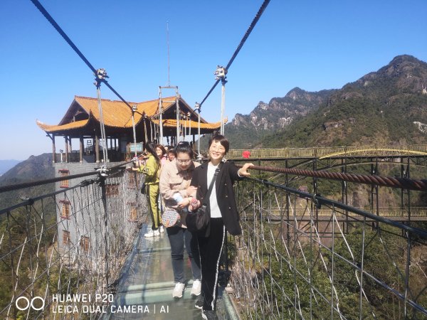 上午,女同胞們一行步入了大覺山古鎮,古鎮依山傍水、建筑錯落有致,結合地形地貌融入一河三街六巷九府,再現大宋風骨,讓大家仿佛回到了千年前的大宋繁華商都;踏上了中國首條長100米,垂直高度達到100多米的高空玻璃橋(也稱“太空步廊”),縱目武夷山脈逶迤山色,俯視腳下萬丈深淵,感受大自然的神奇魅力;進入了座落在蓮花峰海拔1000米的一個天然巖洞內集“儒、釋、道”三教合一的大覺巖寺,凝聽美妙神奇的民間傳說;最后,大家拾級而上,經過1365個石階到達南天門。站在南天門上,極目遠眺,所有的大山此時都變得渺小,置身其中,人會有很多的感觸,所有困難都變得不是困難,所有的人生坎坷此時也都變得微不足道了!