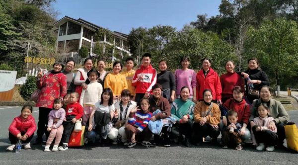 上高縣郵政70多位女性職工和部分家屬相聚在洞山腳下,有的三倆同事相伴,有的挽著親愛的媽媽,有的牽著可愛的女兒,戶外踏青之路顯得格外溫馨。