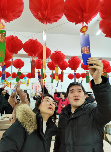 本次展示活動共收到了33幅作品,主要囊括了繪畫、書法、攝影、手工作品。 活動現(xiàn)場,手工作品面前,不時傳來女職工們贊嘆的聲音,她們驚喜看著一對大紅色,喜氣洋洋的古代大婚男女對娃擺件《龍鳳呈祥》,這對擺件從發(fā)飾,頭冠,貼花,到身上的彩珠都是手工縫制、一針針鉤好,女鳳冠的每一顆珍珠的長度,和固定的力度,發(fā)飾的噴漆都是作者用心制作。此作品做了三個月左右才完美收工。 攝影作品前,徐紅副主席抓拍的《鬧元宵.猜燈謎》的照片洋溢著喜慶歡樂的氣氛,讓大家又一次回憶起職工們當時猜燈謎的歡樂場面。