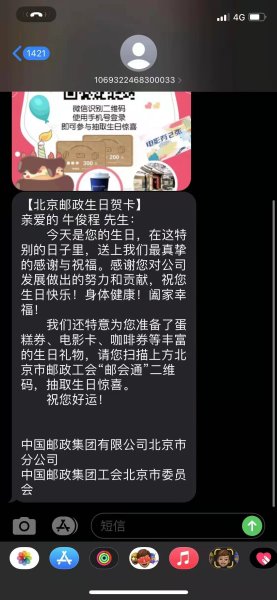 2022年,北京郵政工會創(chuàng)新服務(wù)方式,在商函中心、發(fā)行中心的大力支持和配合下,從4月1日起嘗試采取“手機短信送生日賀卡+【郵會通】微信公眾號抽獎送驚喜”的方式,用真心、真情為職工服務(wù),凝聚職工隊伍,打造幸福北京郵政郵政。