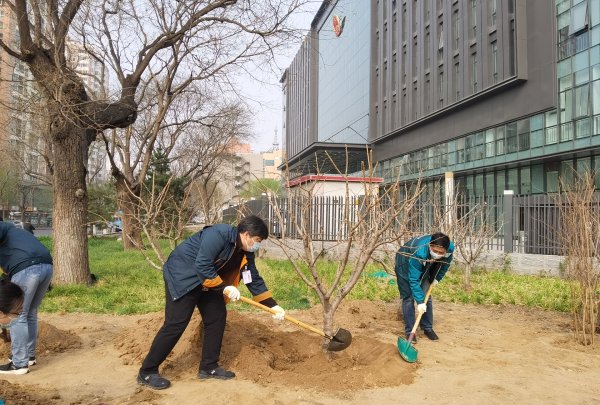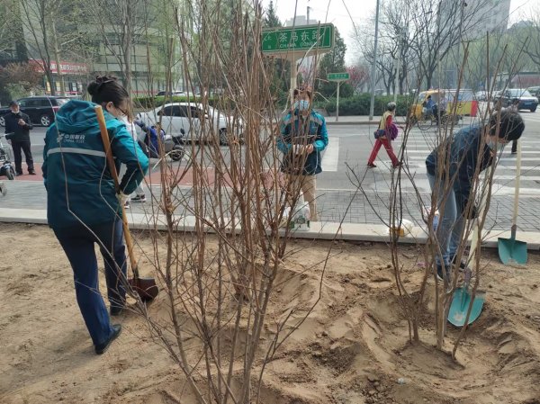 4月9日在北京第38個首都義務(wù)植樹節(jié)期間。同城業(yè)務(wù)分公司工會組織職工與西城園林綠化公司員工到西城區(qū)紅蓮南綠地攜手開展義務(wù)植樹活動。