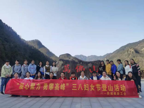 3月8-9日,舒城縣郵政分公司開展了女職工登山比賽活動。 活動中,女職工們個個精神抖擻,英姿颯爽,你追我趕,盡管登山途中體力消耗有所疲憊,但大家通往直前,相互鼓勵,在充滿歡聲笑語中成功登上山頂。