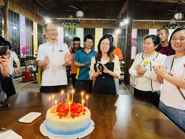 “祝你生日快樂,祝你生日快樂......”。最后,大家在園內(nèi)的莊園里一同唱起了暖心的生日歌,一起許下生日愿望,共同吹熄生日蠟燭,為龍南郵政2022年一季度過生日的“壽星們”送上了美好的生日祝福,現(xiàn)場彌漫著溫馨、歡樂的氛圍。
