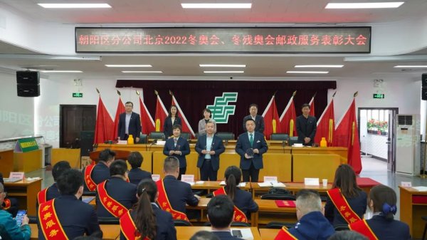 朝陽區分公司:在朝陽區分公司召開的服務表彰大會上,區分公司領導、機關各部室經理、各支局局長、各團隊代表參加了會議。 大會首先組織全體與會人員觀看了《使命在肩 冬奧有我——朝陽區分公司冬奧會、冬殘奧會服務工作紀實》,市場部就朝陽區分公司冬奧會(冬殘奧會)郵政服務進行整體工作總結。區分公司領導為獲獎集體和個人進行了頒獎,參與冬奧服務的項錚、崔永偉、徐健和李健等同志分別代表先進服務團隊和個人代表做了匯報發言。