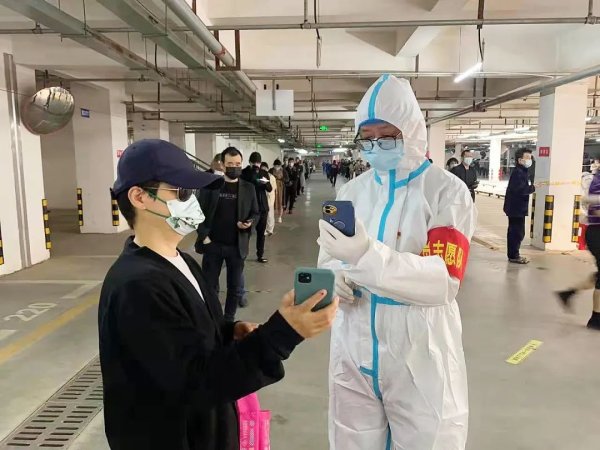 “曹大寶”是曹偉的網名,社區工作人員和志愿者伙伴們都喜歡稱呼他為“大寶”。在社區,年長的、未使用智能手機的最喜歡他,不僅是一米八的身高讓他在眾多“大白”中顯得更為突出,而且耐心仔細的服務,讓他和居民之間產生了更多的默契。