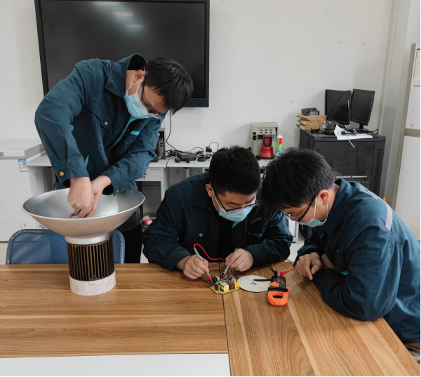 幾位年輕成員在郭正谷和李春陽的指導(dǎo)下,將工礦燈逐一拆開,零件逐個測試,最后發(fā)現(xiàn)大部分燈都只是光源板損壞,只需采購光源板進(jìn)行更換就可以修復(fù)。工作室成員一起動手很快就將三十多個工礦燈修復(fù)好,測試正常后還細(xì)心地貼上標(biāo)簽以備后查。工作室修復(fù)好這些工礦燈比原本計劃重新采購新燈大約節(jié)省費用19000元左右。這些修復(fù)好的工礦燈陸續(xù)將安裝回原位,恢復(fù)場內(nèi)缺失的照明,保證生產(chǎn)現(xiàn)場亮度能夠維持生產(chǎn)有序安全地進(jìn)行。通過這一次修復(fù)活動,工作室成員既鍛煉的動手能力,也學(xué)習(xí)到了很多電路方面的知識,還為進(jìn)口車間節(jié)省了不少維修成本,可謂是“一舉三得”。