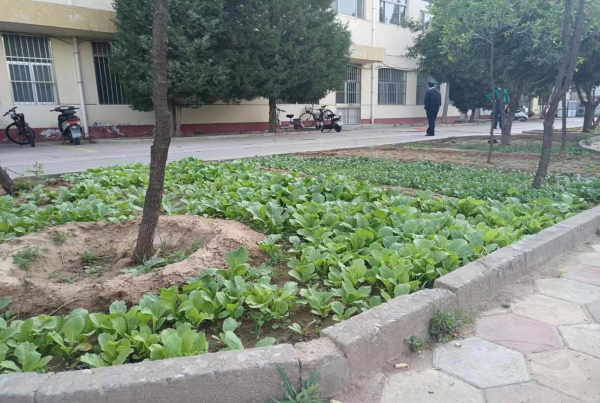 在剛進入春天的時候,各單位就組織黨員、干部職工利用主題黨日活動或者業(yè)余時間著手建設“小菜園”,開墾土地、施肥換土。菜園管理員在里面種上西紅柿、茄子、辣椒、大蔥、豆角等接近20余個品種的蔬菜。