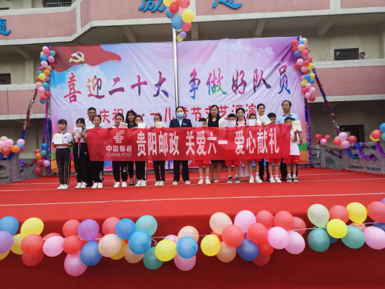 圖片說明:貴陽市郵政工會在鄉(xiāng)村小學開展“喜迎二十大、爭做好隊員”兒童節(jié)慰問活動。