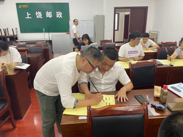 書法是中國所特有的一門視覺藝術。為推進上饒郵政“文化饒郵”建設需要,豐富職工業余生活,提高書寫規范,促進上饒郵政職工漢字書寫水平的全面提升,掀起熱愛漢字、寫好中國字的熱潮,進一步傳承和弘揚中華民族優秀傳統文化,6月30日,江西省上饒市郵政工會成立書法興趣小組并組織了開班儀式,邀請了中國硬筆書法協會會員、江西省書法家協會會員、上饒市書法家協會副秘書長占明鑫老師授課。