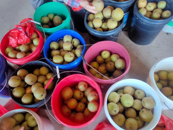 當日上午10點30分,“壽星”員工們陸續來到了約定地點。在采摘人員的指引下,提著桶子、袋子、三五成群走進梨園,一顆顆香甜飽滿的梨子掛在枝頭,聞著果香,欣賞著豐收的果園風光,此刻遠離城市的喧囂,走進自然,感受自然,讓人心情愉悅和有一種說不出的滿足感。