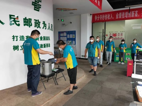 東區(qū)集散中心營(yíng)業(yè)部切實(shí)做好生產(chǎn)旺季防暑降溫工作,營(yíng)業(yè)部主任為職工煮好綠豆湯,囑咐投遞員出班前、回班后一定喝一杯冰綠豆湯,再帶一瓶冰凍飲料,確保人人平安度夏。