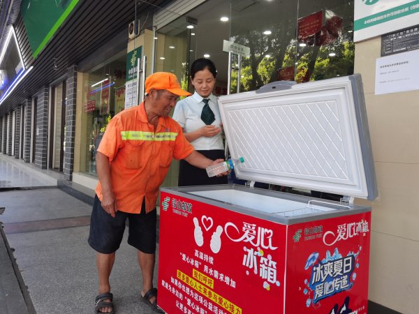 近期,持續高溫天氣導致全國各地出現了多起“熱射病”事件。為了給環衛工人、交警同志、外賣小哥、快遞小哥等戶外工作者免費送清涼,江西省上饒市鉛山縣郵政分公司在獅江大道網點門口設置了“愛心冰箱”,免費為戶外工作者供應冷飲,在這個炎熱的夏天為他們送去了一絲清涼。