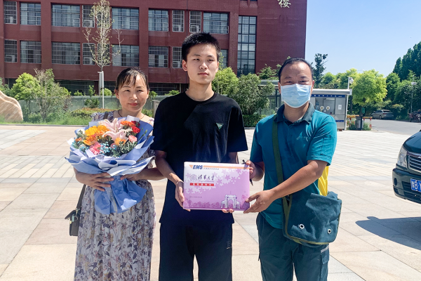 7月19日上午9點,上蔡縣郵政分公司投遞員徐會超懷著激動的心情來到上蔡縣第一高級中學,鄭重地把當地首批清華和北大的錄取通知書送到景子洋、王寧靜等7位學子手中。上蔡郵政還為7位學子精心準備了鮮花和拉桿箱,向他們送去了郵政真摯的祝福。