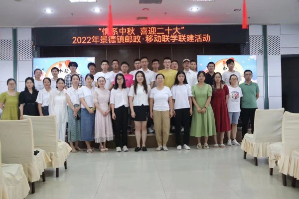 2022年9月9日下午,江西省景德鎮市郵政工會與市移動分公司工會聯合開展了“情系中秋,共繪團圓”聯學聯建活動。本次活動結合中秋佳節,以“團圓、思鄉”為主線,推進郵政與移動戰略合作深度,展現雙方物流、信息流的資源優勢,促進雙方業務融合、員工互學互鑒。