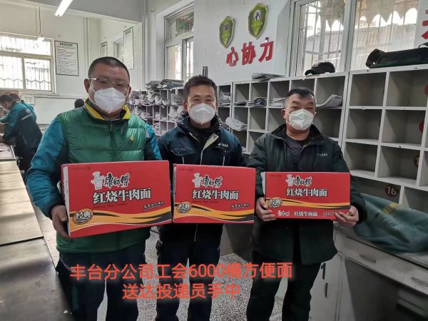 三是區(qū)分公司工會(huì)在市分公司工會(huì)送暖心飯的基礎(chǔ)上,發(fā)放方便食品及開展送餐活動(dòng)。截止目前,已發(fā)放方便面6000桶、榨菜1500袋、老干媽240瓶、礦泉水380箱、預(yù)制菜2000份。充分體現(xiàn)企業(yè)對(duì)員工的關(guān)心關(guān)愛,把工會(huì)的溫暖送到廣大投遞員心坎上。(北京郵政工會(huì))