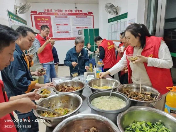 11月黨員后勤支撐保障組赴城中營業部開展“做好一頓飯”“暖蜂行動”,為一線員工準備了可口的晚餐。攬投員郭品華高興地表示:“歸班回來已經天黑,還能有口熱乎晚飯,讓我們真切感受到了家的溫暖。”(江西省郵政工會)