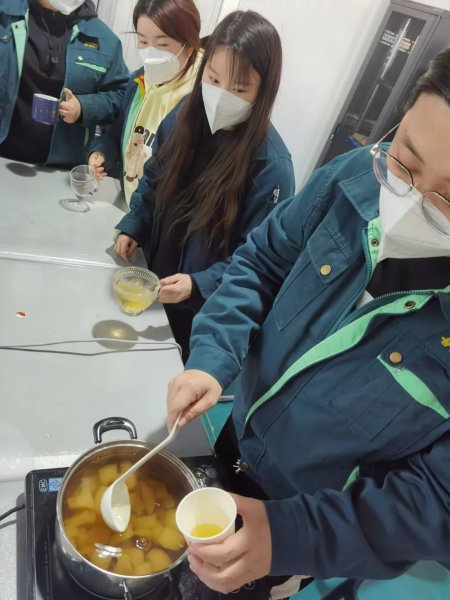 為了給吃住在單位的員工提供良好保障,電商中心工會為長期堅守崗位的他們送去了米、面、肉等慰問品。近期,北京氣溫驟降,一杯杯“小吊梨湯”為一線員工帶去了企業的關懷和問候。(北京郵政工會)
