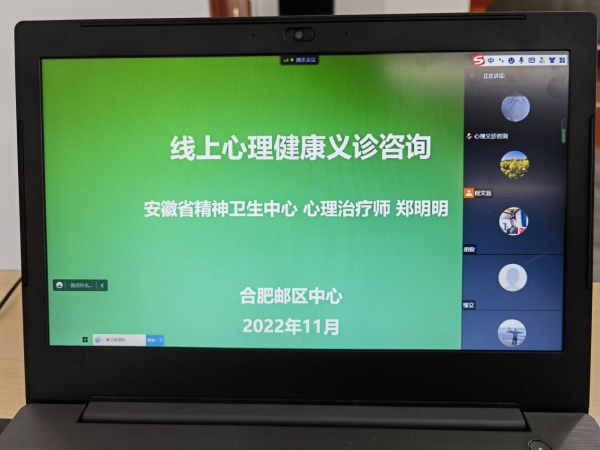 為持續(xù)關(guān)愛(ài)職工心理健康,緩解疫情等特殊時(shí)期的心理壓力,11月25日下午,合肥郵區(qū)中心局工會(huì)舉辦線上心理健康義診咨詢活動(dòng),邀請(qǐng)安徽省精神衛(wèi)生中心心理治療師圍繞疫情時(shí)期心理健康呵護(hù)、工作壓力緩解和睡眠障礙克服等進(jìn)行了義診及互動(dòng)交流。合肥郵區(qū)中心有60余位職工參與了義診咨詢活動(dòng)。