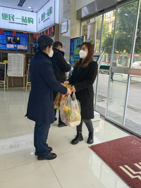珞璜郵政支局工會小組長張慶親自到超市為所有員工挑選水果與早餐,考慮到因疫情原因,大家身體或多或少都有點不適,網上說檸檬泡水加鹽和白糖喝了對身體好,特意挑選了檸檬,購買了白糖,同水果一同送到每個網點,每個員工手上。還分別到職工小家關心每位員工身體情況。鼓勵員工調整心態,積極面對。