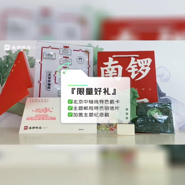 商函中心策劃開展“打卡中軸線上的主題郵局——南鑼鼓巷主題郵局”活動,和郵迷朋友們穿越北京中軸線,來一場跨越千年歷史時空的相遇,共同感受文明的奇跡和文物之美。