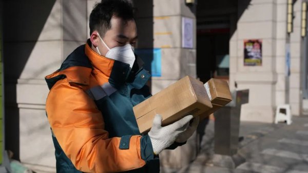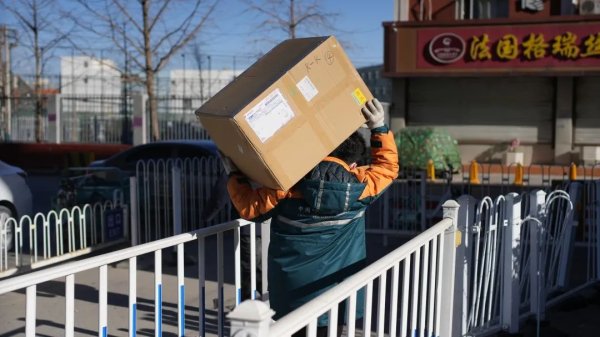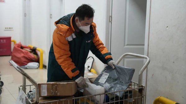朝日升起,街上行人仍是寥寥,片區內大多數居民和商戶都返鄉過年了,家中無人收件。王東風與客戶一一電聯確認,按照對方意愿將郵件存入驛站的快遞柜或放置在家門口,不多時,他的雙手便凍得通紅。