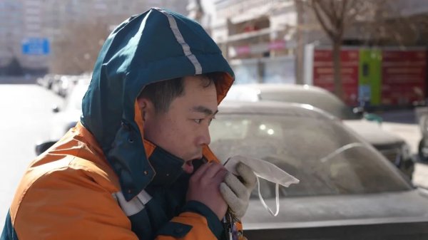 8點,記者跟隨投遞員王東風開始了第一班投件。王東風今年31歲,來自內蒙古自治區興安盟扎賚特旗。自2020年入職郵政以來,這已是他留京值守的第三個春節。面包車內氣溫極低,王東風不斷呼出大團白色的熱氣,眼角、眉梢上很快便覆蓋了一層薄薄的冰霜。他卻笑言:“北京的冬天相比我的老家內蒙古而言還不算太冷,做點體力活就暖和了!”