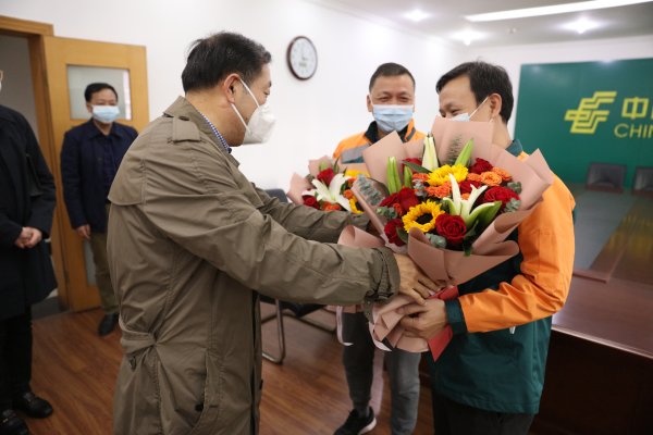 “大家辛苦了!我代表省分公司黨委來看望大家,給各位拜個(gè)早年!”1月10日下午,江西省分公司黨委委員、副總經(jīng)理、工會(huì)主席戴書華一行來到南昌郵區(qū)中心,走訪慰問了江西省勞動(dòng)模范王金珍和江西省五一勞動(dòng)獎(jiǎng)?wù)芦@得者李鵬,為他們送上了慰問金和鮮花,傳遞了省分公司黨委和工會(huì)的關(guān)懷和溫暖。省分公司企業(yè)發(fā)展與科技部總經(jīng)理龍衛(wèi)林、黨委黨建工作部主任鄔龍玉陪同慰問。