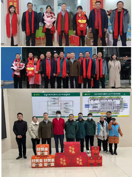 1月22日,大年初一,在這團圓喜慶的日子里,安慶市分公司黨委書記、總經理一行來到桐城郵件處理中心、桐城呂亭支局、安慶郵區中心、潛山舒州路所、潛山寄遞營業部等網點,為春節期間奮戰在工作崗位上的一線職工送去了慰問品和新年的祝福,鼓勵各單位要全力抓好旺季業務發展,高標定位,趁勢而上,同時要求各單位切實做好服務后勤保障工作,讓基層員工工作舒心。