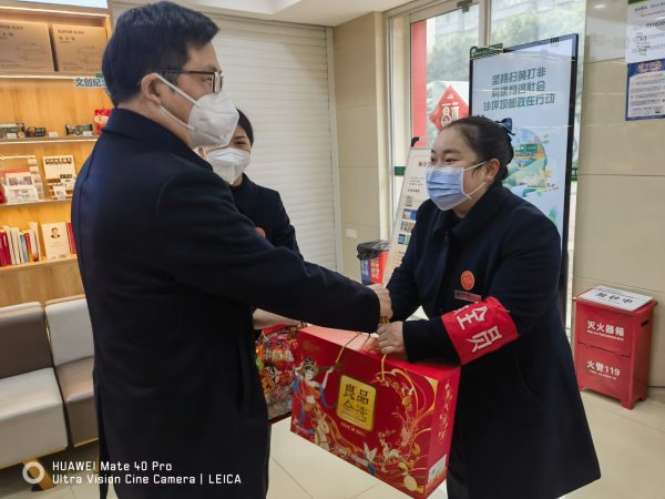 1月19日,沙坪壩領(lǐng)導(dǎo)班子成員帶領(lǐng)各內(nèi)設(shè)部門(mén)負(fù)責(zé)人,兵分兩路,對(duì)所有網(wǎng)點(diǎn)和營(yíng)業(yè)部展開(kāi)慰問(wèn)。在網(wǎng)點(diǎn),領(lǐng)導(dǎo)班子成員詳細(xì)了解網(wǎng)點(diǎn)經(jīng)營(yíng)管理、旺季業(yè)務(wù)發(fā)展情況,向員工致以企業(yè)的問(wèn)候和節(jié)日祝福,感謝大家對(duì)企業(yè)發(fā)展所做的貢獻(xiàn),期望大家再創(chuàng)新業(yè)績(jī)。在營(yíng)業(yè)部,他們了解郵件投遞及攬收情況,與員工親切交談,關(guān)心員工工作和生活,并叮囑大家要毫不松懈地抓好安全生產(chǎn)工作,確保企業(yè)生產(chǎn)安全、員工身體健康。