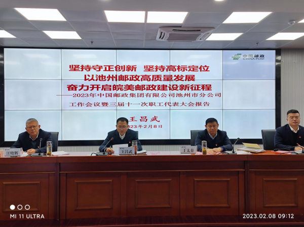 為深入貫徹落實黨的二十大、中央經濟工作精神,認真落實集團公司、省分公司工作會議精神,總結2022年成績,部署2023年工作,池州市分公司于2月8日召開2023年全市郵政工作會議暨三屆十一次職工(會員)代表大會。會議采取電視電話會議和現場會相結合的方式進行。