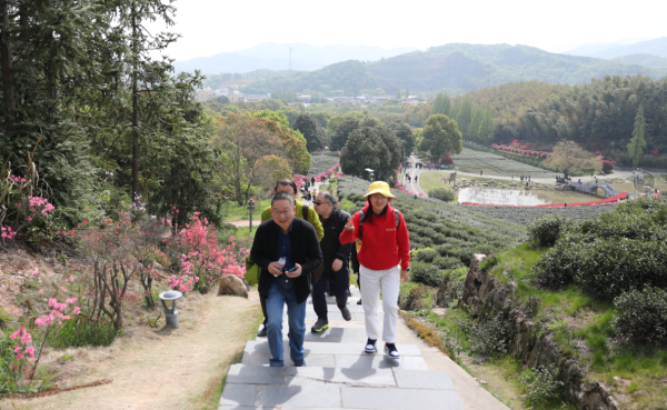 1958年9月16日,毛主席視察舒茶人民公社發出“以后山坡上要多多開辟茶園”的偉大號召,從此舒茶人用汗水潤綠了這片荒坡野嶺。如今一行行茶樹蜿蜒著向兩邊延伸,滿眼皆是翠綠的茶葉,陣陣清風送來幽幽茶香。會員們沿著山路拾級而上,一路歡聲笑語,或三五成群邊走邊聊,或精神矍鑠大步登高,一邊欣賞茶園風光,一邊沐浴春日暖陽,感受著微風拂面的清爽,盡情呼吸著清新自然的空氣,交流著工作和生活,享受著運動帶來的身心愉悅,樂在其中。
