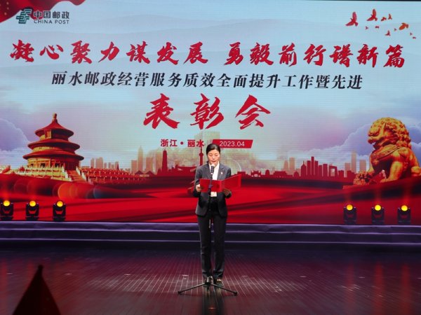 4月14日,為深入學習貫徹習近平新時代中國特色社會主義思想和黨的二十大精神,表彰先進、共慶成果,以先進典型示范引領,引導麗水全市郵政職工“凝心聚力謀發展 勇毅前行譜新篇”,麗水市郵政工會在麗水市工人文化宮劇場召開先進表彰會,麗水市分公司、寄遞事業部領導班子成員和市本級員工,各縣(市)分公司、寄遞事業部領導班子成員及中層以上管理人員,受表彰代表人員、演職人員等參加。
