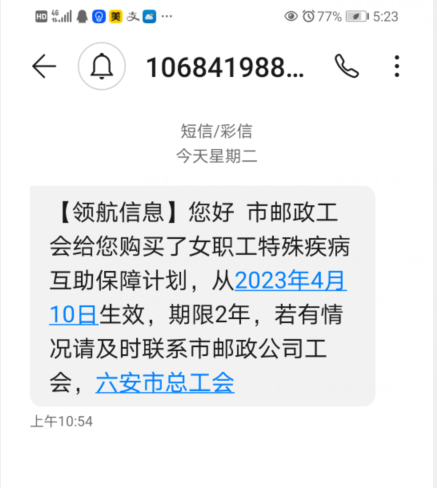 為貫徹省分公司關(guān)于為職工辦實(shí)事的活動(dòng)項(xiàng)目安排,六安市郵政工會(huì)于四月份組織了全市577名在職女職工加入特殊疾病互助計(jì)劃。
