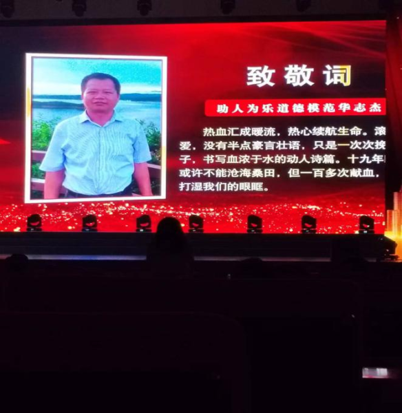 華志杰為團風(fēng)縣郵政分公司安保干事,擔(dān)任團風(fēng)縣紅十字會無償獻血志愿服務(wù)隊隊長。19年來,無償獻血100多次,多次獲全國無償獻血獎銅獎、金獎,以及終身榮譽獎。