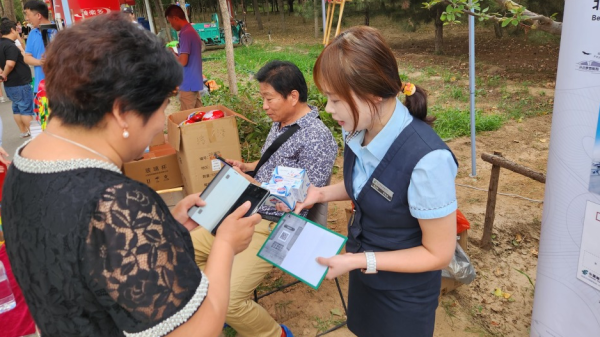 龐各莊郵政支局作為屬地郵局,積極開展郵政品牌宣傳和特色業務推廣工作,并與金融網點工作人員合作提供金融業務服務。活動現場人頭攢動、熱鬧異常,往來旅客紛紛在郵政展臺駐足參觀和選購。