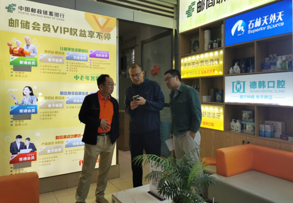 調研過程中,施方均副主席認真聽取了新聞路郵政支局的基本情況,對網點廳堂布局、現有設施情況、周邊環境等進行了現場查看,并就昆明郵政工會對該服務站點的初步建設規劃意見給予了充分肯定。施方均副主席表示,服務站點的建設要結合網點實際情況,疊加、拓展實用性強的服務功能,實現網點現有資源的整合利用;要做實做細服務工作,為戶外勞動者提供便捷、實用、暖心的服務;要加強站點的日常管理,切實將郵政網點打造成為能夠真正服務戶外勞動者的“郵愛驛站”。