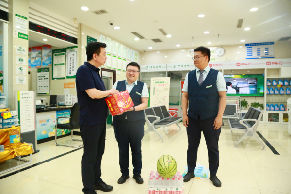 7月25日,大渡口郵政工會開展“戰高溫、送清涼,防汛情、保通信”慰問活動。區分公司總經理及工會主席深入郵政所、營業部進行慰問。在郵政所慰問時,重點了解網點客戶、余額、保險及周邊商戶等情況,對近期重點活動進行指導,鼓舞信心,提振士氣。同時給予員工親切的關懷和慰問,提高員工戰勝困難的決心。在營業部,工會為大家送上清涼飲料,區分公司領導叮囑大家在高溫作業下,做好防暑降溫、自我保護、安全生產等工作,并聽取員工在生產、生活方面的訴求和困難。
