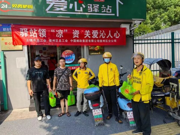 自今年8月以來,上饒市總工會、信州區總工會、信州區郵政分公司聯合開展了三期“驛站領‘涼’資 關愛沁人心”活動,借助“郵愛驛站”愛心平臺,為高溫下的戶外工作者們提供防暑降溫物資。這也是上饒市信州區分公司持續深入開展“我為群眾辦實事”的舉措之一,通過持續建設好郵愛驛站,為戶外勞動者提供“累了可歇腳、沒電來充電、渴了有水喝、飯涼能加熱”的貼心服務。(江西省郵政工會)