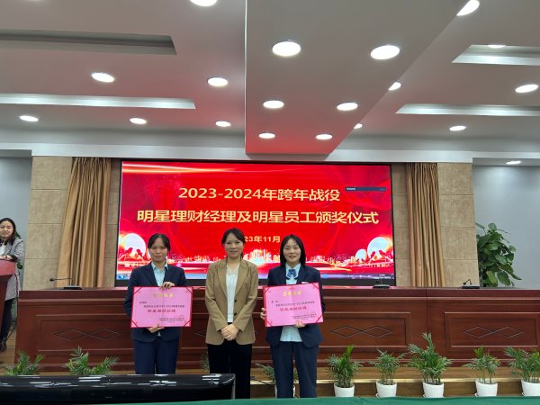 活動現場,永川郵政工會主席盧玉針對獲得2023-2024年跨戰明星的理財經理進行現場頒獎,營造“學先進、爭先進、當先進”的學習、工作的氛圍,充分發揮跨戰明星先進示范引領作用。并寄語員工要保持學習韌勁,學以致用;緊抓重點,結果導向;團結協作,形成合力;厲兵秣馬,未雨綢繆,在跨年戰役中為團隊及個人爭取榮譽,再創新佳績。