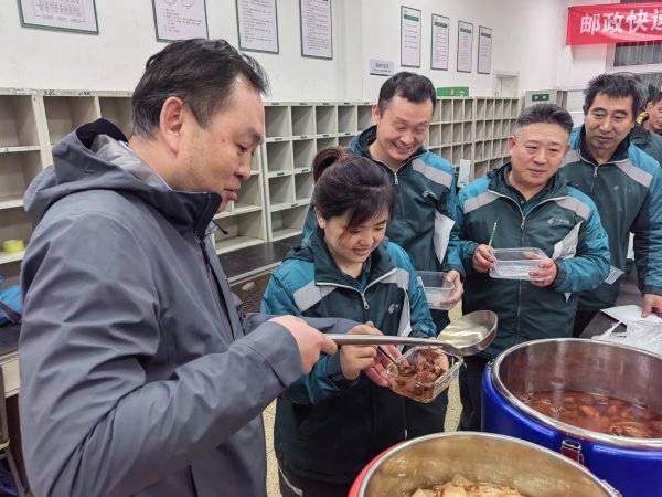 雙十一高峰期的序幕已然拉開,東城區分公司工會結合各支局的實際情況,廣泛聽取一線職工的真實呼聲,制定了今年雙十一的慰問方案。我們為奮戰在一線的職工送去了熏雞、松仁肉肚、五香豆干、火腿腸、水餃、方便面、面葉、面包和牛奶來保障雙十一期間的能量補給需求。同時我們購買精品五花肉,雞腿,蔬菜等食材,由區局食堂進行專門加工,區分公司領導攜各部室組成送餐小分隊,分別帶隊為一線投遞員們送去一桶桶的紅燒肉、烙餅和燒餅夾肉。讓在外奔波的投遞員就像回到了家一樣,吃上熱氣騰騰的可口能量餐。