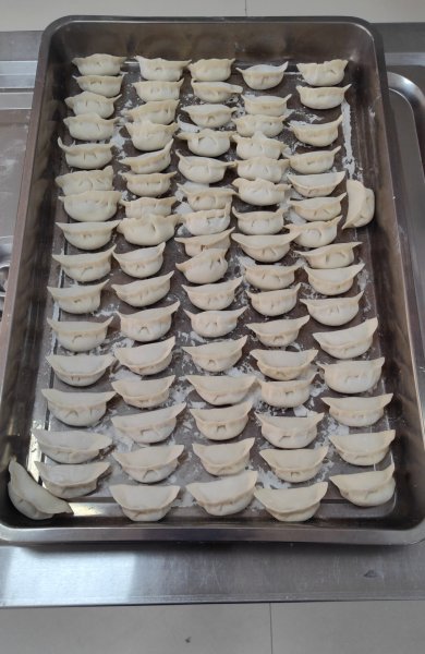 8日上午8點50分,活動正式開始。食堂工作人員早早為大家準備了新鮮的餃子餡和餃子皮。活動現場,大家按照分組進行“包餃子"比賽,有的分發餃子皮、有的取餡、有的包餃子,大家分工有序,忙而不亂;尤其是包餃子的,面皮經過他們魔術般一捏,各式各樣各種餃子瞬問呈現在眼前,不一會兒,蓋簾上擺滿了包好的餃子。活動期間,大家談笑風生,沉浸在歡樂的節日氣氛中。