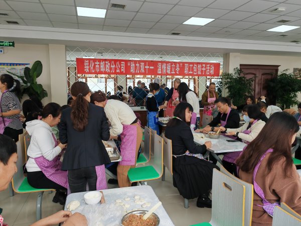 11月8日為冬季的第一個節氣“立冬“,為迎接冬天的正式開始,又恰逢”雙十一“旺季生產的來臨,綏化市郵政工會組織干部職工齊聚食堂,開展了“助力雙十一 溫情暖立冬”職工包餃子活動。