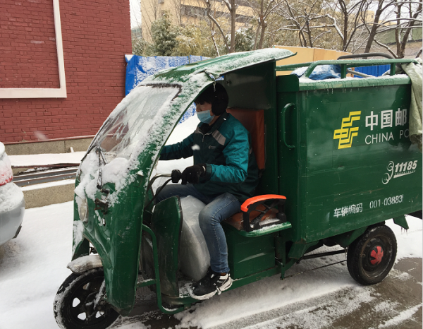 房山區阜盛西街郵政支局為投遞隊伍陸續冒雪出發掃清障礙。投遞員充分利用小拉車、防水包裝和防雨帆布等工具保護好郵件。大件包裹根據用戶要求,貼心送至指定防水位置。在這冰天雪地里,他們成了冬日里最美的風景線。
