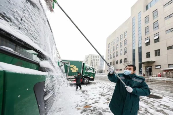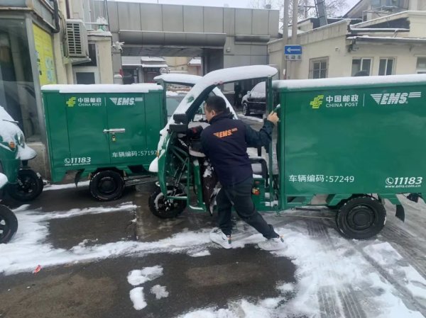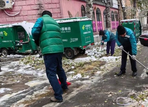 “密切關注天氣變化,注意低溫、雪情,對車輛和交通帶來的影響,做好車輛每日“三檢”,確保車輛性能正常,外出投遞注意行車安全。”豐臺區分公司在對雪天通信生產及時進行安全提示的同時,區分公司班子成員和相關部室負責人第一時間深入一線掌握情況。安排機關人員到業務量集中的攬投部協助內部分揀等作業,全力支援一線生產。西羅園郵政支局投遞部姚志成主任一早就到社區領取了融雪劑,組織大家清掃道路。早上九點多,投遞員陸續出班,王 洪賀作為投遞部唯一女投遞員,整理好自己的郵件,也跟隨大家一起投遞。
