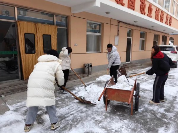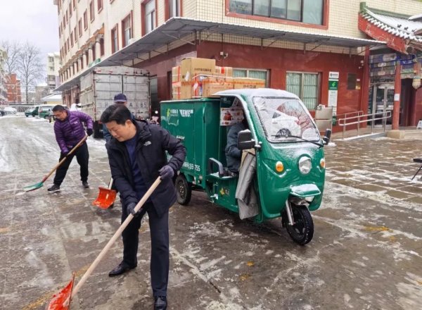 早上8時,延慶區分公司機關部室人員在區分公司領導帶領下,拿上鐵鍬、掃把等除雪工具,對網點門口及大院停車區域進行積雪清掃,大家有的鏟冰,有的掃雪,1個小時的時間,網點周邊場地、路面積雪和冰面都已被清理干凈。