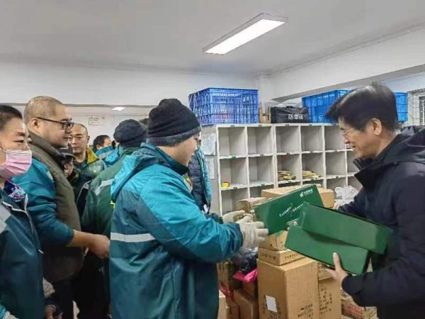 東城區分公司工會主席第一時間來到營攬投部送到一線投遞員手中,同時暖心叮囑投遞員們,要做好自身保暖與防寒,保重好身體,以健康的身體投入到工作中。