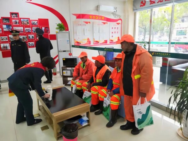 城南支局“郵愛驛站”每天對外開放,站點設施設備俱全,配備了茶幾、沙發,微波爐、冰箱、手機充電器、應急藥品等設施物品,是環衛工人、快遞員、交警、志愿者等廣大戶外勞動者臨時休息的“歇腳點”,服務群眾的“愛心站”,更是黨和人民群眾的“連心橋”。冬日里的一杯熱茶,夏日里的一杯綠豆湯,驛站還為戶外勞動者開展送金融知識、反詐知識等宣傳活動,用真情實意打造戶外勞動者的“幸福港灣”。