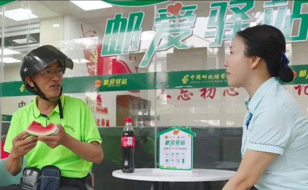 “以前中午休息沒有固定場所,特別是夏天坐在哪里都是滾燙的。自從郵政有了這個驛站,我們有了歇腳的地方,這里冬暖夏涼,工作人員還給我們準備了水、飲料,真是舒心!”清潔工李大爺說。