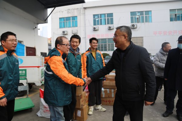 12月28日下午,湖州市總工會黨組書記、常務(wù)副主席田立新,率湖州市總工會權(quán)保部部長孔晨、湖州市直屬基層工會主席戴大喜一行,代表市委市政府、市總工會前來慰問奮戰(zhàn)在一線的郵政快遞員工,田書記握著快遞小哥的手,親切地詢問了解他們工作與生活的情況,囑咐他們注意安全、勞逸結(jié)合,感謝他們及家屬的辛勤付出,為湖州經(jīng)濟(jì)發(fā)展貢獻(xiàn)力量。同時,還專門帶來了慰問品,親手送到員工手上并合影。